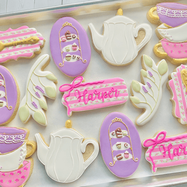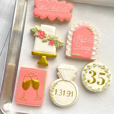Designed with intention and crafted by hand, each custom order is a one-of-a-kind set tailored to your event. From color palettes to fine details, every cookie reflects a polished, elevated aesthetic. Explore past collections for inspiration and submit an inquiry to discuss your vision.